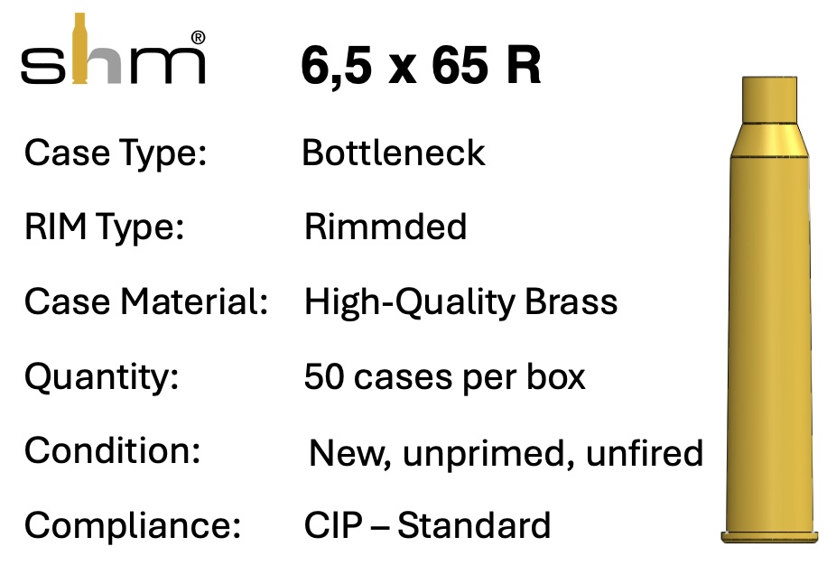 The 6.5x65R features a rimmed case for break‑action rifles, single‑shots, and combination guns, ensuring reliable extraction and dependable operation in traditional European platforms.
