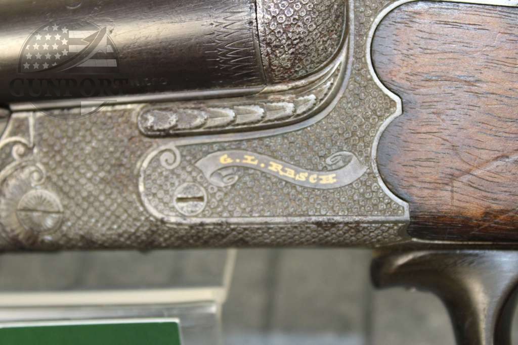The receiver and most of the steel parts are fully engraved, and the G.L.Rasch – Braunschweig is set in gold. The engravings also have some rust pits.