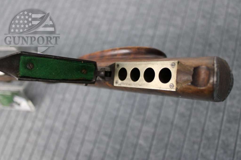 The stock shows signs of wear and has a stock length (front trigger – butt cap) of 34cm. It has a stock magazine for 4 cartridges.