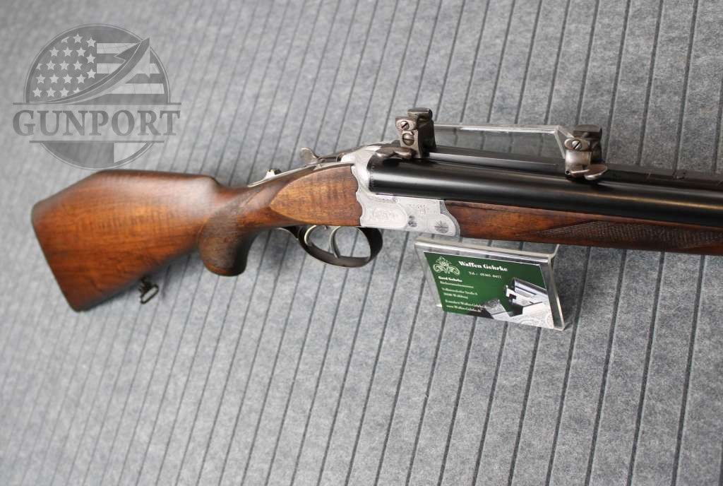 The drilling is equipped with Krieghoff’s tilt-mount pre-assembly. We include the appropriate mounting parts, which should fit a 6×42 rifle scope with a rail.