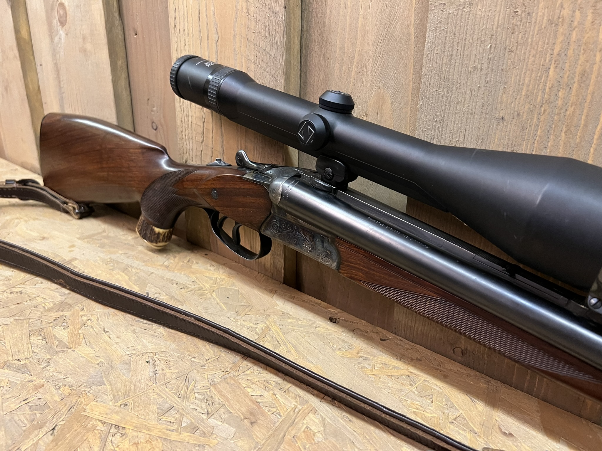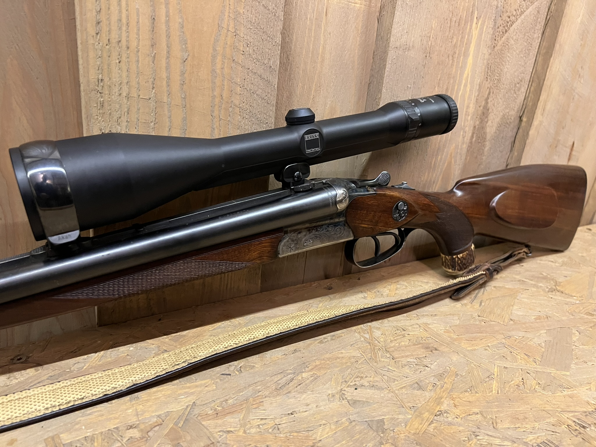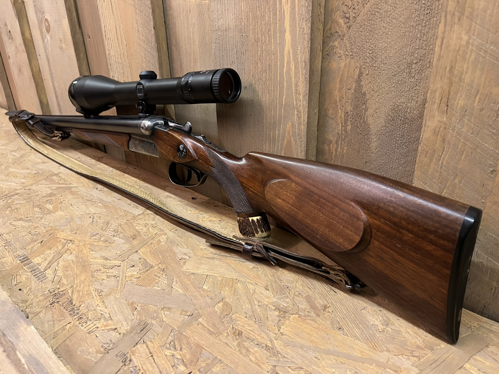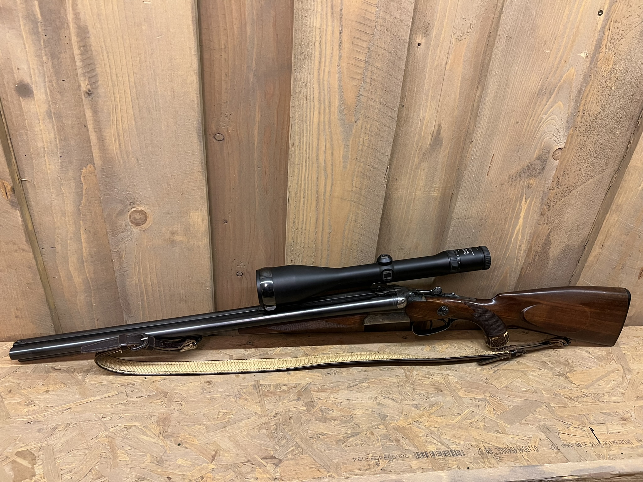 Simson Suhl Drilling – 12GA / .30-06 + .22 Hornet Insert – Zeiss Scope