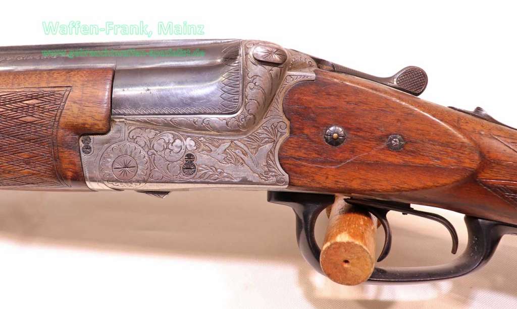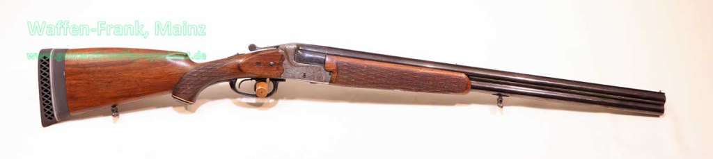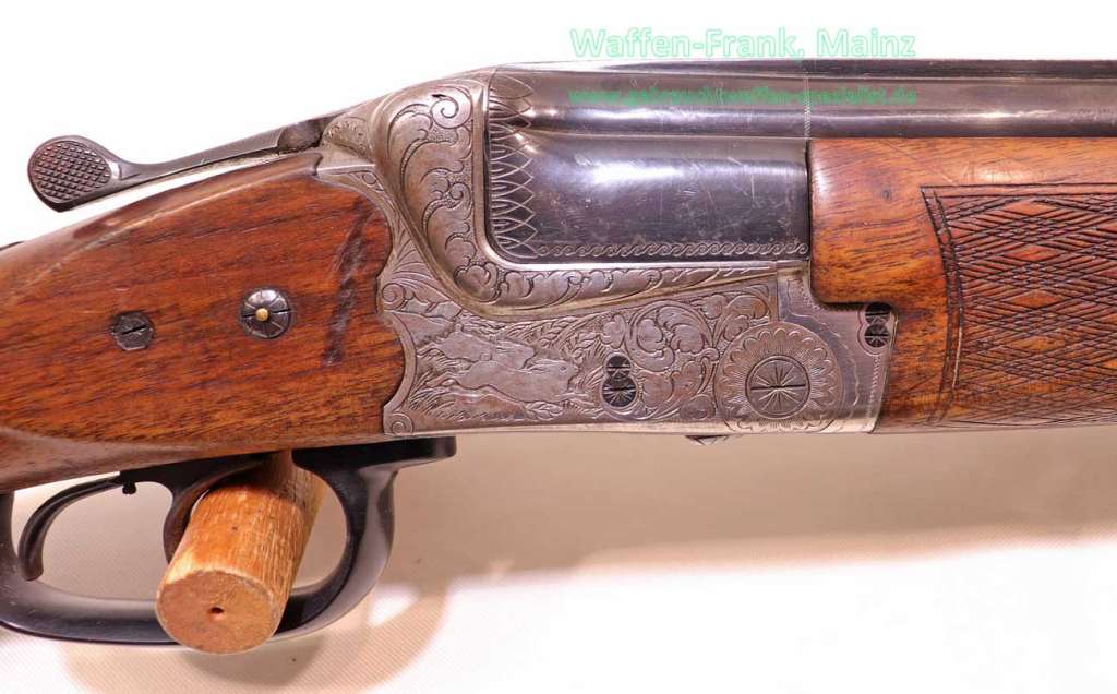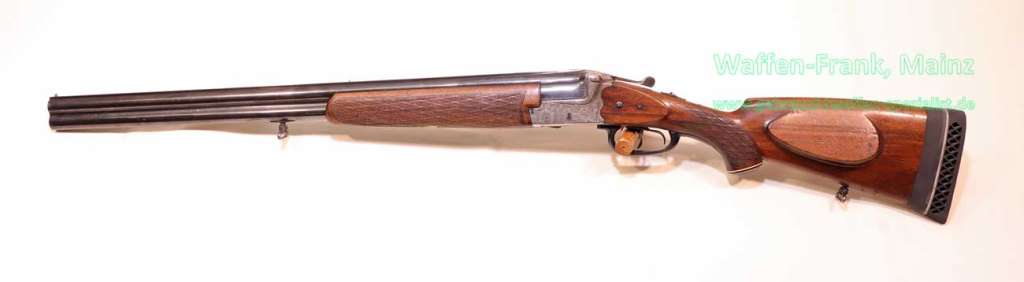 Well-maintained gun, with Blitz lock and Kersten breech, double trigger, front trigger also usable as a set trigger, with signal pins, choke 1/2-1/1, walnut stock with German cheekpiece for right-handed shooters and Scottish checkering, stock subsequently lengthened back to 365mm… a handy and elegant all-purpose hunting rifle, expandable with appropriate interchangeable barrels or insert barrels…
