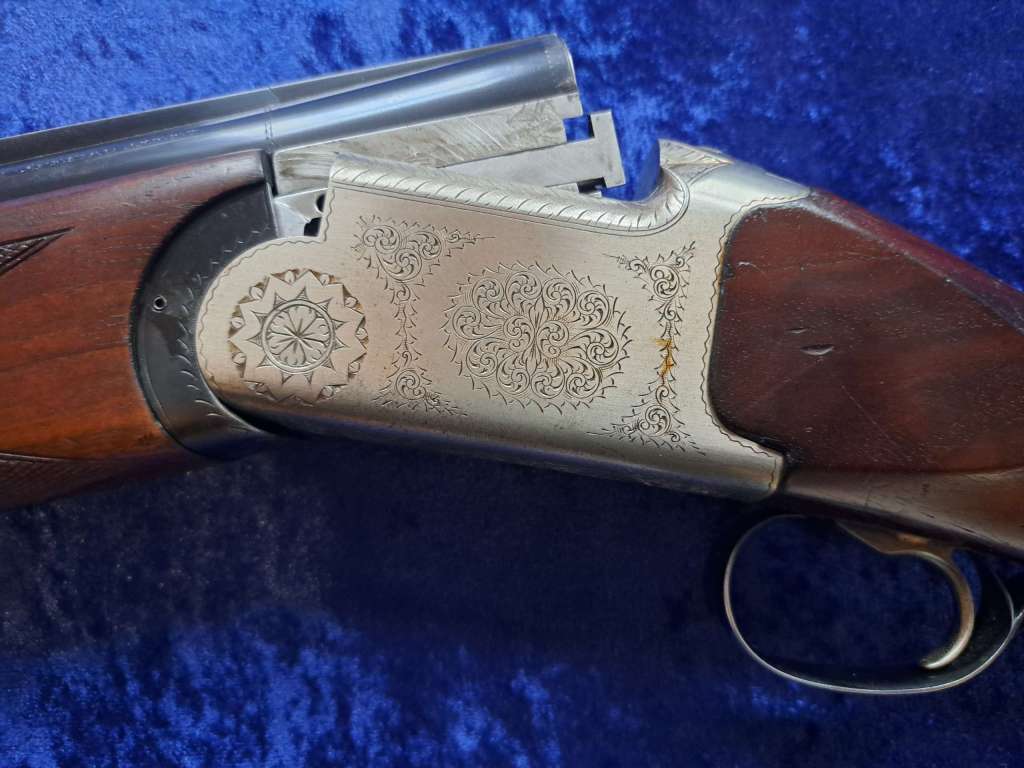 Over-and-under shotgun with genuine leather buttplate