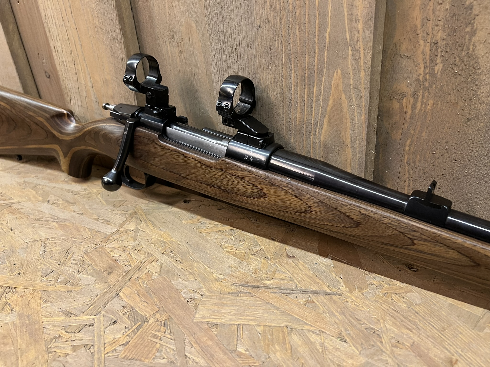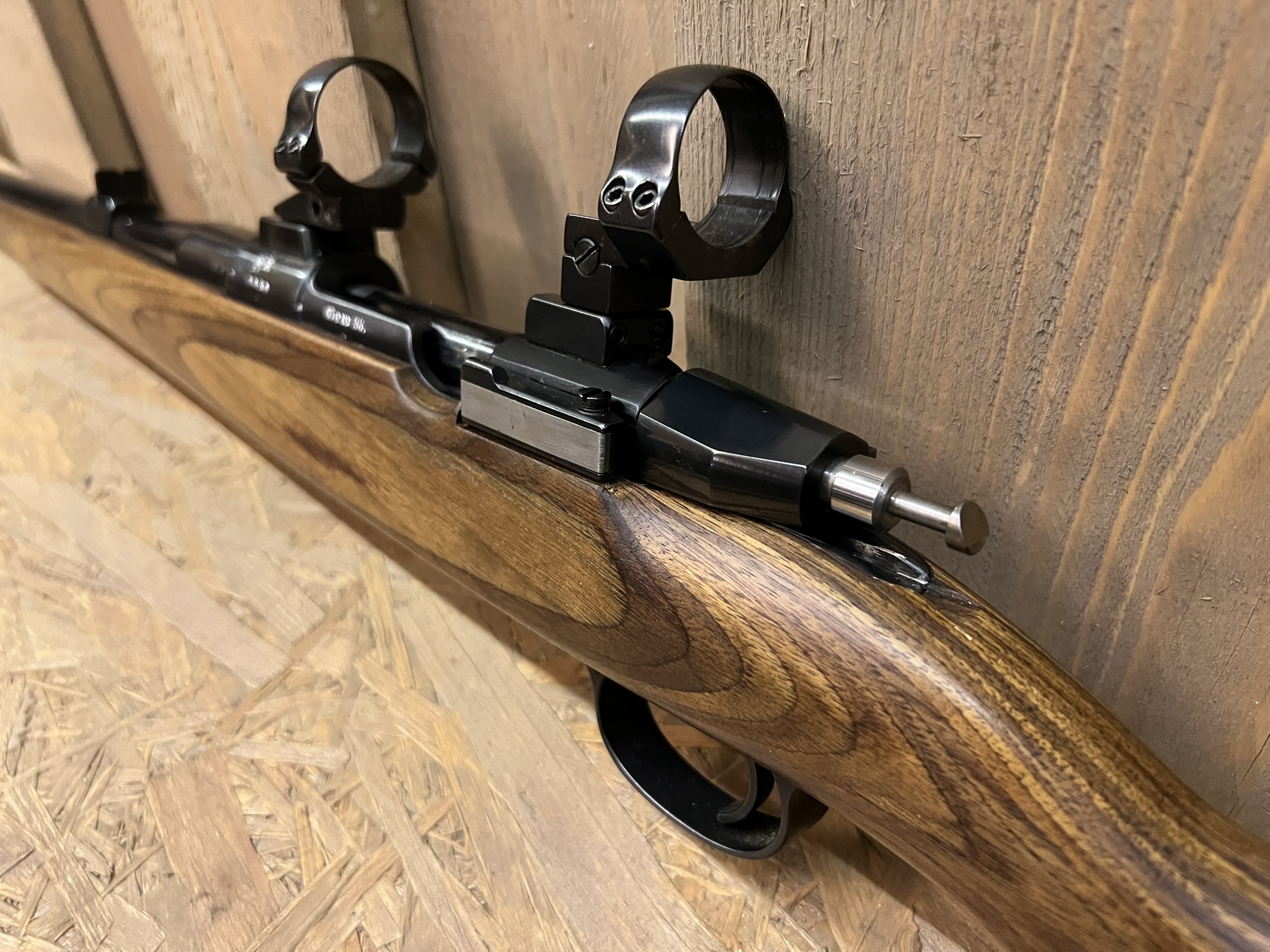 The laminated stock is beautifully done and not only visually striking, but also practical and stable in use. Overall, the rifle appears to have been assembled with great care and expertise — not just a conversion, but a thoughtfully executed, high-end hunting rifle.