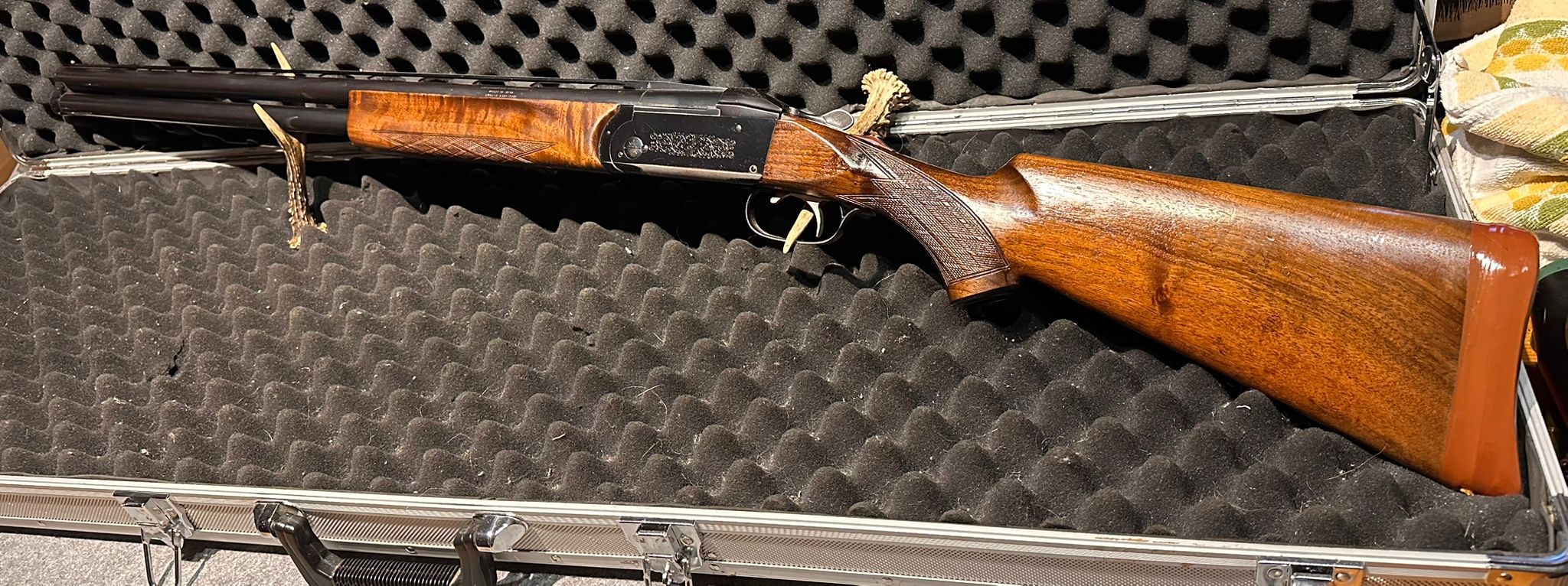 Krieghoff K32 in 12 gauge. This shotgun is in used condition and shows visible signs of wear consistent with regular use.